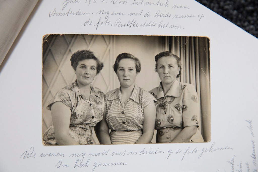 “Niet lang daarna ontmoette ik tijdens een filmavond mijn man. Vlak na de oorlog kregen we vier kinderen. We hadden een kleine boerderij in Drenthe waar we zelf groenten verbouwden. Mijn man werkte bij de zuivelfabriek, bij de melkontvangst. Toen las hij een advertentie dat ze in Amsterdam buschauffeurs zochten. Je verdiende daar veel meer dan in Drenthe. De Amsterdammers wilden zelf niet meer rijden op de tram en in de bus. Twee jaar lang reisde hij iedere twee weken op en neer van Amsterdam naar Drenthe om bij ons te zijn. In 1956 zijn we verhuisd. Dat was in die tijd echt een emigratie. Ik weet het nog als de dag van gisteren. We verhuisden eind augustus, net voordat de scholen weer begonnen. Met vier kleine kinderen en mijn zusjes in de trein naar Amsterdam. Ik had nog nooit een trein van binnen gezien. Laat staan Amsterdam. Geuzenveld was toen net gebouwd; er lag alleen nog maar een zandweg voor de deur. Er woonden mensen uit verschillende provincies. Ik kon dus ook lekker mijn eigen dialect nog spreken. Mijn familie zag ik hooguit nog een keer per jaar. Met een verjaardag of als we in de zomer naar Drenthe op vakantie gingen. Ik zorgde voor de kinderen en het huishouden, totdat het helemaal fout ging. Mijn man kon niet van de vrouwtjes afblijven en ging vreemd met de buurvrouw, mijn vriendin, ook nog. In 1969 zette ik hem ’s nachts de deur uit. Ik stond er helemaal alleen voor. Dat was bittere armoe, hoor.”