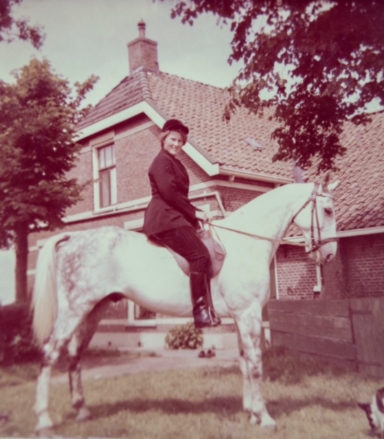 “Mijn liefde voor het boerenleven was diepgeworteld. Elke dag hielp ik mijn vader met het melken van de koeien. Je deed een touw om de poten zodat de koe je niet kon schoppen. Zo ging dat toen. Maar ik hielp ook met het schoonmaken van de stallen en het bijhouden van melkmonsters. We werkten vaak samen en hadden een hechte en bijzondere band. Ik herinner me de avonden waarop we de melkmonsters bekeken om te zien welke koeien het beste presteerden. Het voelde altijd als een klein succes wanneer onze inspanningen vruchten afwierpen. Naast het werk op de boerderij had ik een grote liefde voor paarden. Als kind wilde ik elk paard dat we tegenkwamen van dichtbij bekijken. Later, toen ik lid werd van een rijvereniging, deed ik mee aan wedstrijden en oefende ik met de paarden op de boerderij. Ik heb er echt enorm van genoten.”