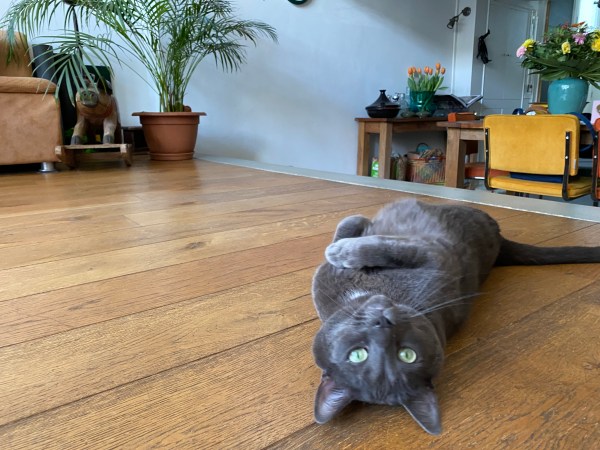 En bepaald geen allemansvriend. Behalve wanneer je vis eet, dan weet hij je te vinden. Hij woont op stand, maar beseft zich dat niet. Als je onverwacht te dicht in zijn buurt komt loopt hij schichtig weg. Maar op andere momenten zoekt hij juist contact en is hij heel benaderbaar. De eethoek, met de houten... Lees verder →